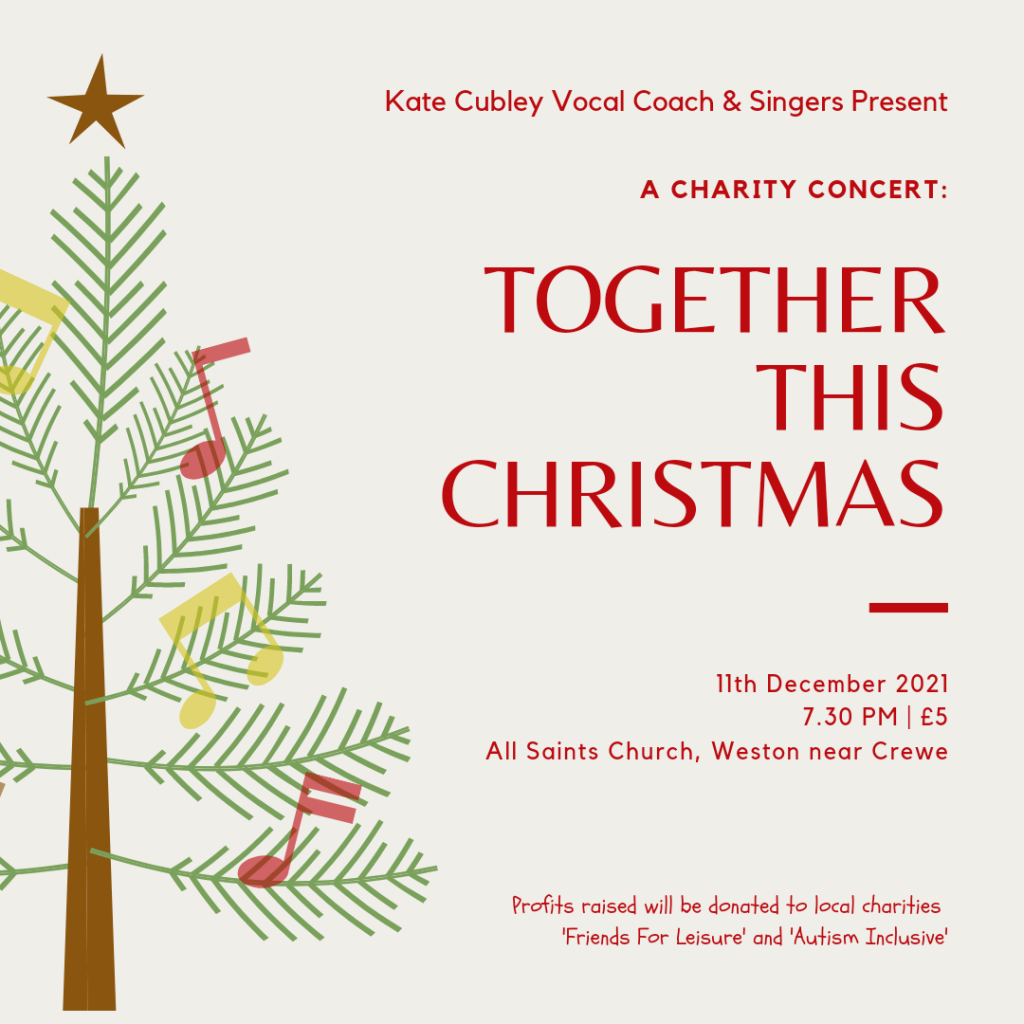 We are super excited to be sharing our Christmas Concert raising money for local charities: ‘Autism Inclusive’ and ‘Friends For Leisure’. We have 14 talented singers taking to the stage to share a variety of music from folk to soul, pop to musical theatre right the way through to the all important Christmas Carols!